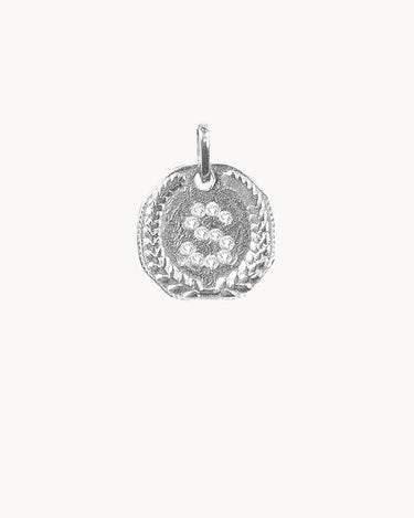 Our Medallion encased in a cluster of zirconia has the initial S as its protagonist. This design aims to emulate an ancient coin with its irregularly rounded edges of approximately 1.2cm with a delicate laurel relief.