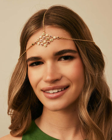 OUR HEADDRESS IS MADE IN A SERIES OF NOBLE AND HYPOALLERGENIC METALS PLUS 18KT YELLOW GOLD PLATING.